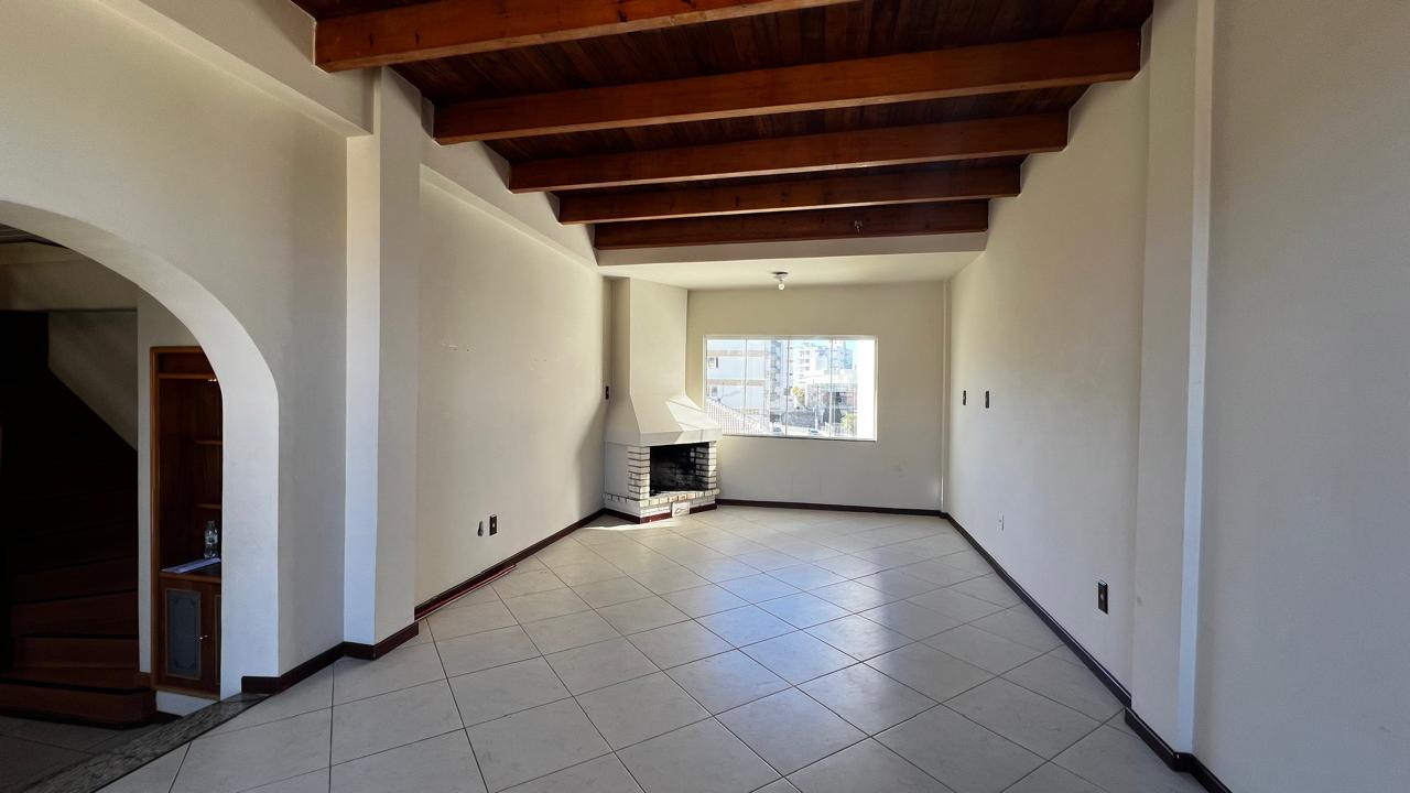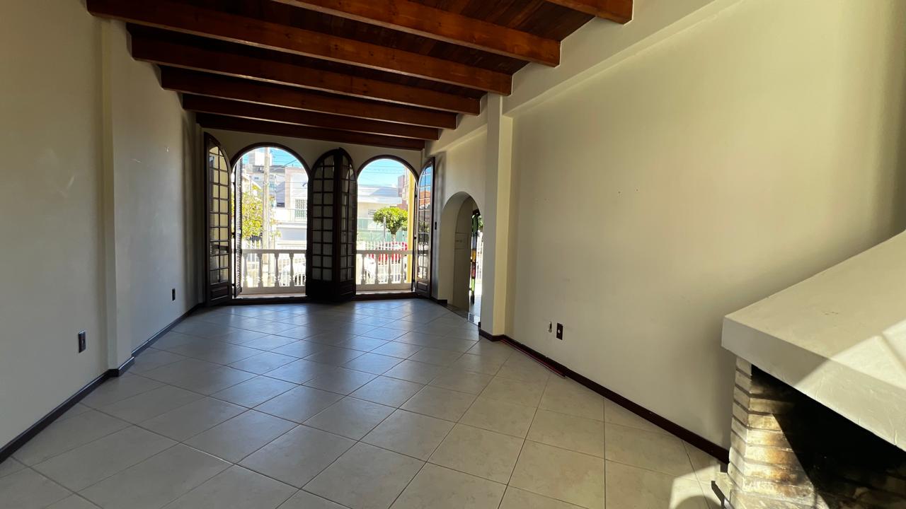 sala com lareira e sacada;