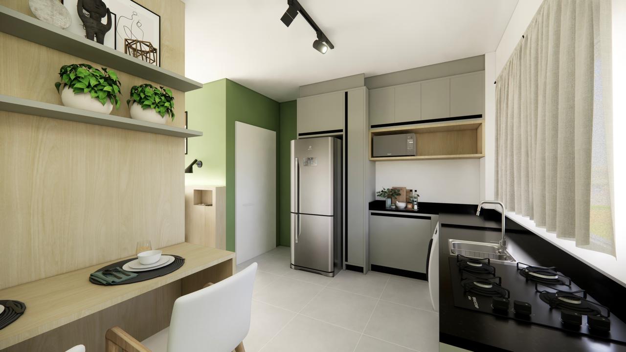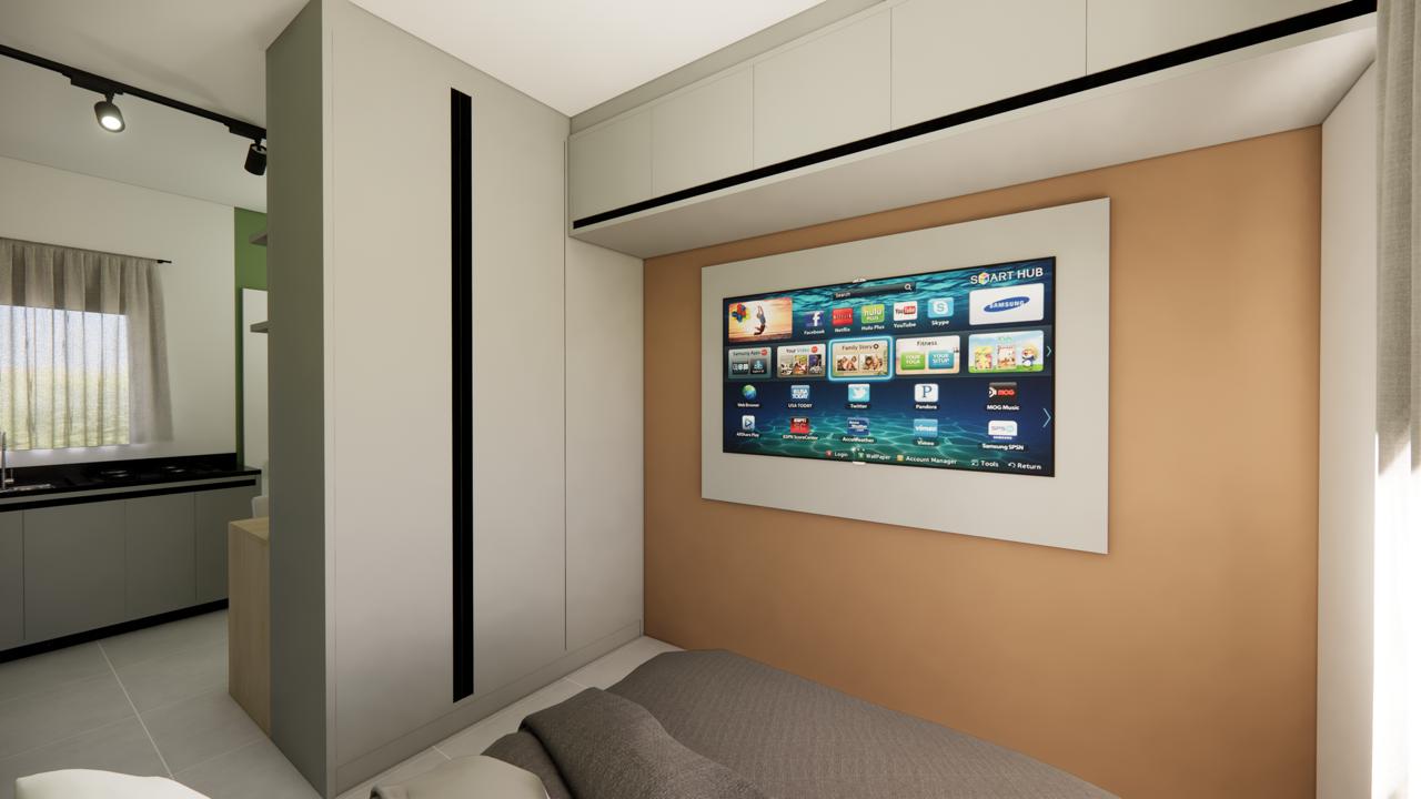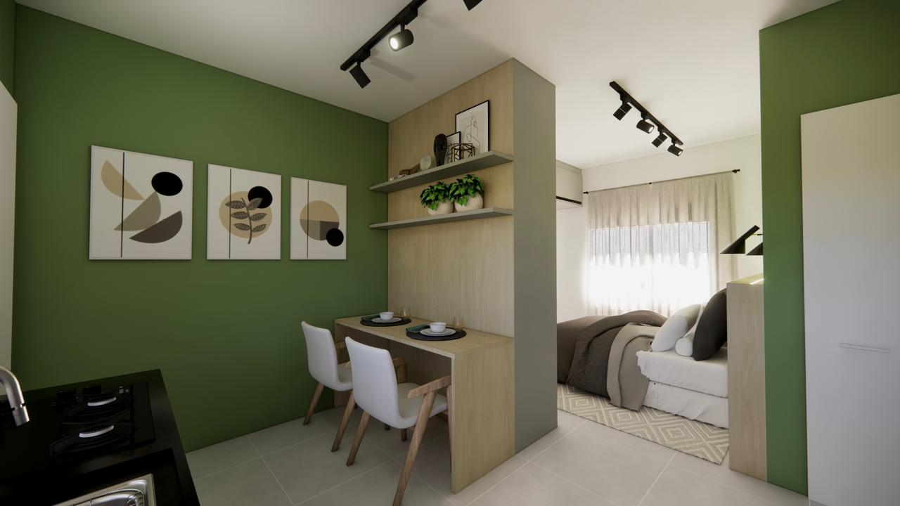 Composto por 1 banheiro, espaço de cozinha planejado com possibilidade de geladeira, máquina de lavar roupas, cooktop de 4 bocas, além de um dormitório aconchegante com roupeiro, estacionamento